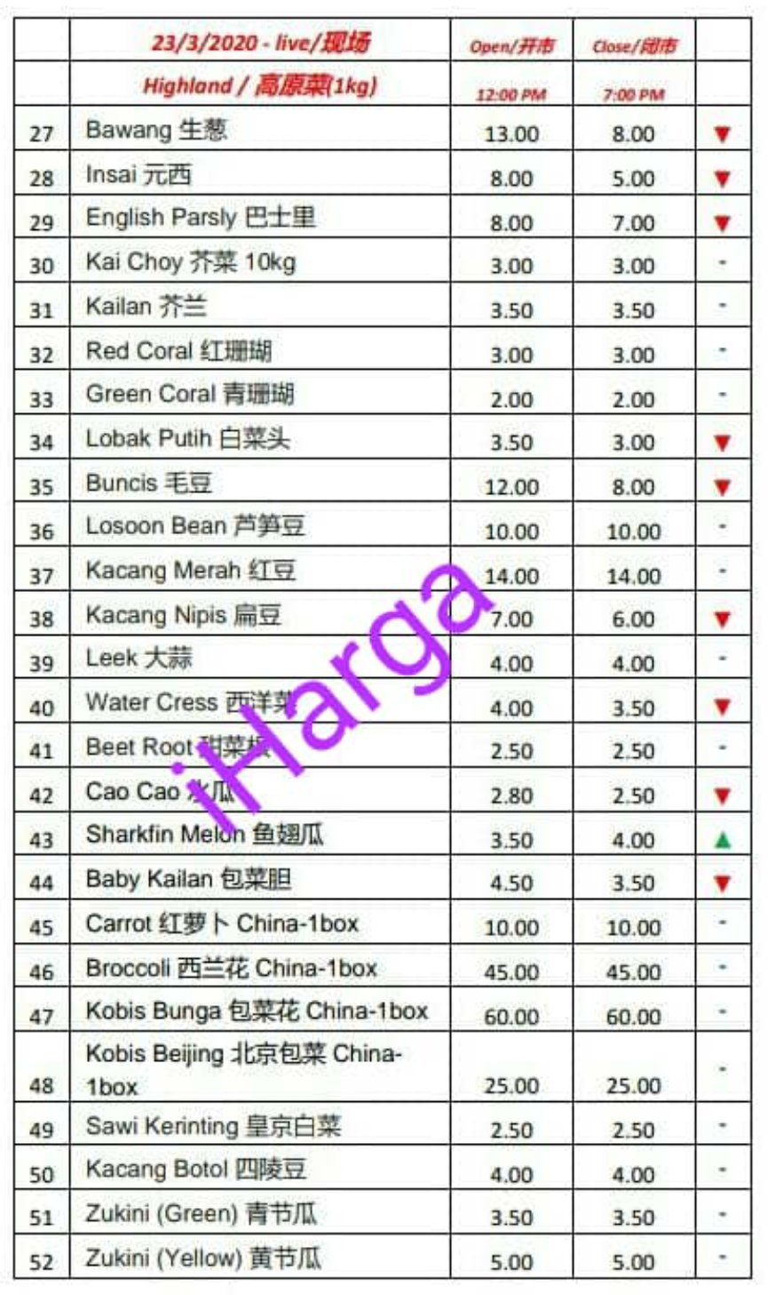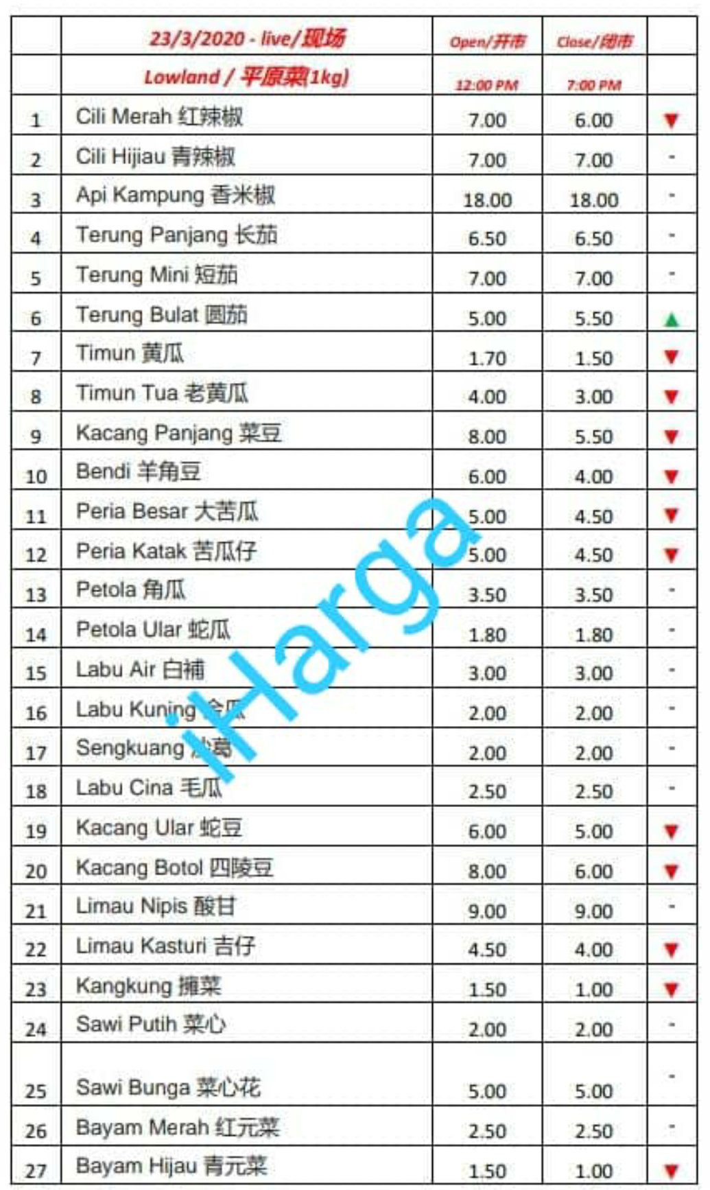 Agrizone Info Pertanian Malaysia On Twitter Harga Borong Sayur Pasar Selayang Terkini Latest Malaysia Vegetable Wholesale Prices 23 03 2020 Isnin Hargasayur Malaysia Malaysialockdown Perintahkawalanpergerakan Jom Sertai Channel Telegram