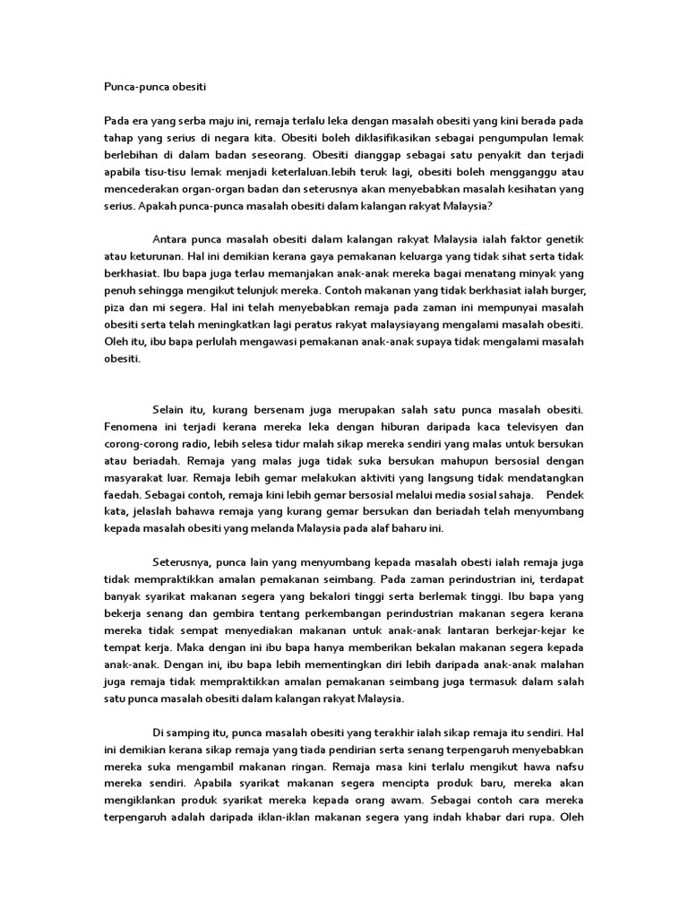 Contoh Karangan Punca Punca Obesiti Dalam Kalangan Remaja Peytondsx